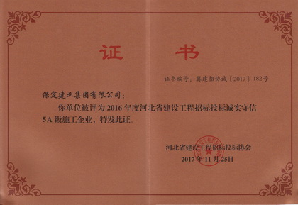 2016年省建设工程招投标诚实守信5A企业