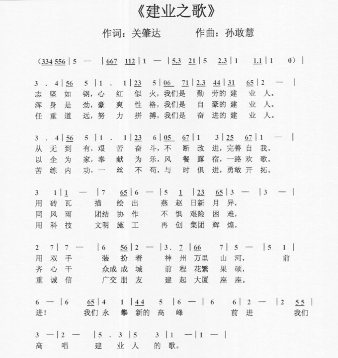 《建业之歌》(歌曲,词谱)下载